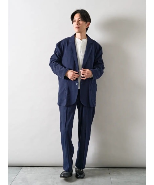 【着用サイズ いずれも:L】凸凹感のあるサッカー素材のセットアップ。シンプルながらもニュアンスを添えてくれる一着。お出かけにはもちろん、ビジネスでも使える万能セットアップ。