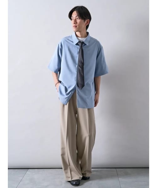 【着用サイズ いずれも:L】接触冷感、イージーケア、ウォッシャブルの機能付きシャツ。タイは取り外し可能で、シーンに合わせて対応可能。これからの暑い季節に向けて持っておきたい一着!