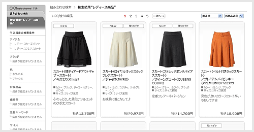 「検索」ボタンを押すと、設定された条件で検索が行われ、商品一覧画面に移ります。