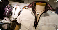 2006〜2007年の秋冬まで、TETE HOMMEでは“Wild outlaw”をテーマに、ロングレンジで不良っぽさが漂うオトコのワイルドスタイルを追求しています。その世界はディテールにまで繊細なギミックを効かせたミリタリーかつエレガントなフォルムがポイント。アウターは、より遊び心を感じさせるワイルドでゴージャスな新しい大人の美意識を表現しています。特に今年の秋冬モデルのドレスアイテムは、削ぎ落とされたソリッドなシャイニーブラックのスタイルを展開。トーン・オン・トーンのアクセをさりげなく合わせて大人のセクシーさをプラス。また、秋冬必至のミリタリー系ウェーブもTETE HOMME流にアレンジ。たとえばカーゴパンツにデザイン化されたコードをあしらい、ギミックを効かせるなど、オトコの野生性を追求するブランドらしい仕上げにこだわります。カラーリングの傾向もホワイト、ブラック、ベージュなど、ミリタリー系でも比較的シックなものでアレンジ。洗練された感覚を忘れないTETE HOMMEならではの大人スタイルを提案します。