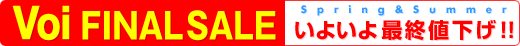 第3弾は恒例のVoi FINAL SALE! 人気ブランドから欲しかったあのアイテムまで更にお買い得になってます。 Voi SERiE春号をお手元に、チェックスタート!! 数量に限りがあります。お早めに! (2004/7/14現在の情報です。)