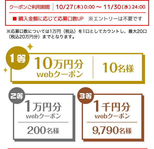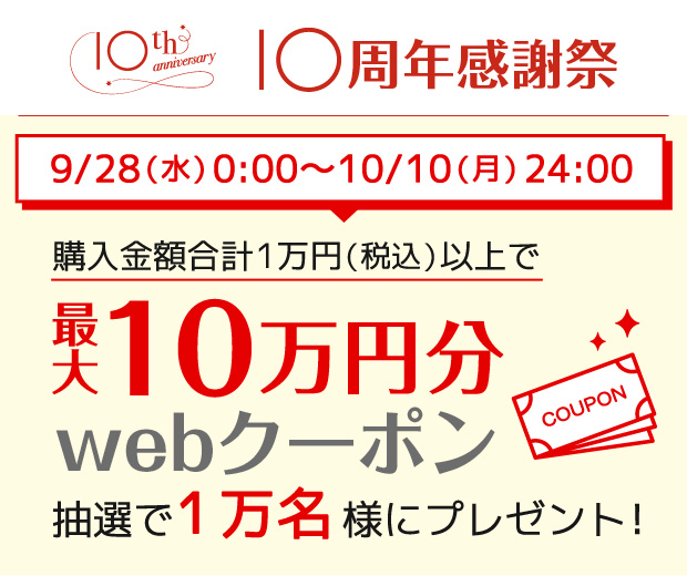 - ※ 本キャンペーンのwebクーポンは、3,000円(税込)以上の商品購入時にご利用いただけます。