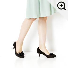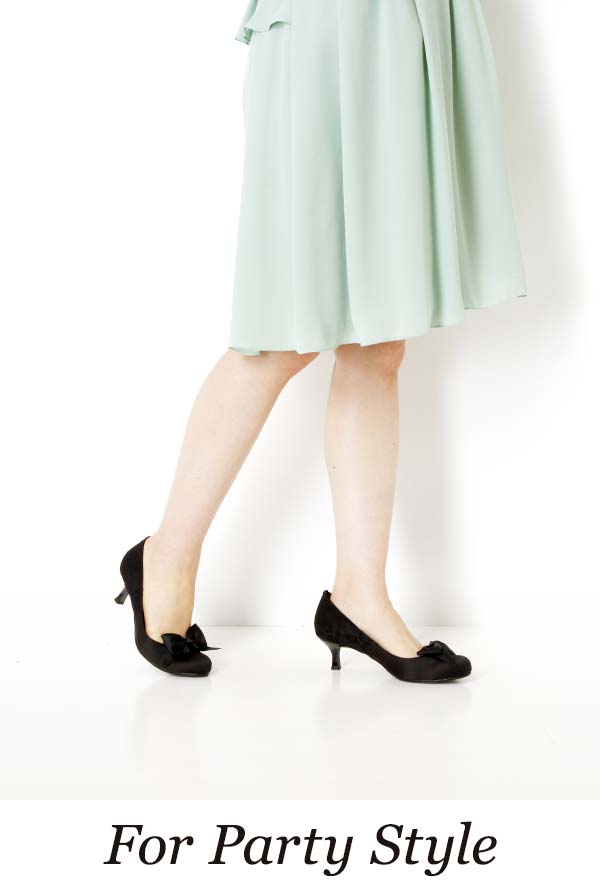 春素材と華奢リボンが上品可愛い♪ヒールの高さを感じさせないはき心地が魅力。