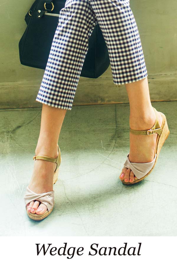きれい見えするのに安定感も抜群の軽やかウェッジサンダル。