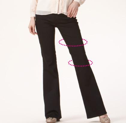 【ブーツカット】膝まわりにゆとりがあるので、太ももを強調することがなく、裾にかけても広がりすぎない