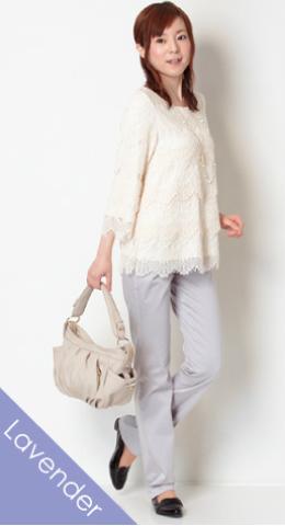 スニーカーやローヒールを合わせれば カジュアルでもはける。(ベージュ・タイトストレート着用)