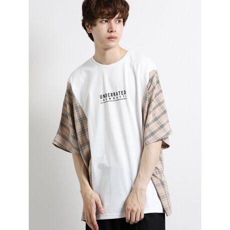 ポンチとチェック柄生地の切替が目を惹く、ドルマンBIGTシャツ。