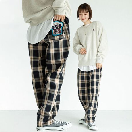 トレンド感のあるシェフパンツです。Sサイズでも丈がかかとに裾がかかる長さでゆったりめで、総ゴムなので調節もしやすく高い位置で履く事も出来ました。チェック柄はくすみカラーのトップスからはっきりとした色味まで幅広く合わせ