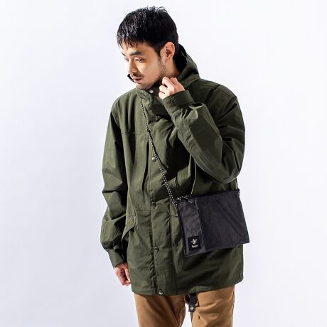 建築資材としても利用され、頑丈で防水性のあるターピークロス製のポーチ。2気室構造でフロントポケットは中身が確認しやすいメッシュ仕様です。バッグインバッグに最適なサイズでショルダーコードを取り付ければサコッシュとしても使用できます。(※シームシーリングを施していないため完全防水ではありません)