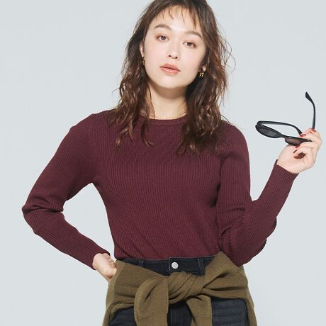 すっきりとしたシルエットで、1枚でもインナーでも美しく決まる万能ニット。
