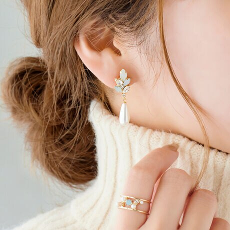 【ドロップパールがゆれるロマンティックなビジューピアス】
