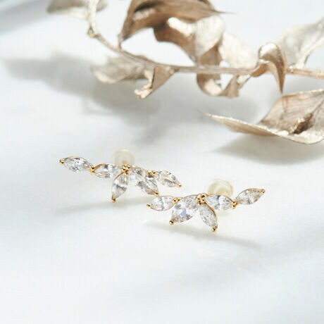マーキスカットのキュービックジルコニアを羽に見立てて並べたジュエリーライクなデザイン。