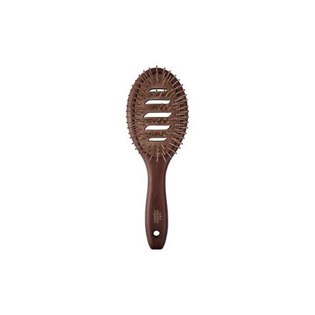ふかふかクッションが心地よいヘアブラシです。軽量で使いやすく、ドライヤーの熱を逃がしやすい、穴の空いたデザイン。手にフィットしやすい形状の竹製ハンドルもポイントです。また、ブラシ部分には、頭皮・髪をすこやかに保つトルマリンを配合。健康的でつやのある頭髪環境へと誘います。<ヘアブラシ/1種/サイズ:H232×W78mm>