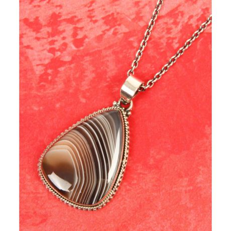【フランス買付のヴィンテージ天然石シルバーネックレス】ほんのりとした透明感のある地石に美しい縞模様(しまもよう)が見られるボツワナアゲートは、