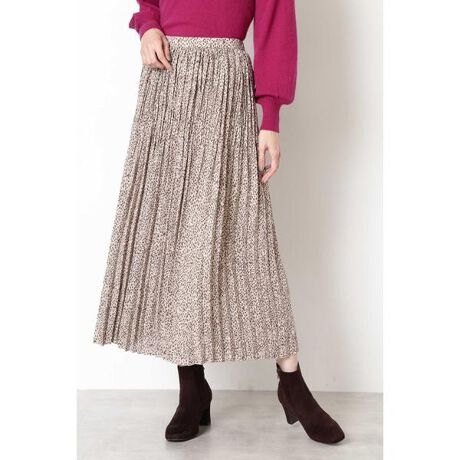 くずしたような細かいアニマルドット柄が目を引くロングスカート。軽やかなジョーゼット素材に上下異なるプリーツ加工を施して、女性らしく揺らめくシルエットに仕上げました。ウエスト後ろはゴム仕様だから穿き心地も◎。ニットからスウェットまでどんなトップスとも合わせやすく、シーズン通して活躍してくれます。裏地付き。※モデルの着用画像の場合、光の当たり具合により、実際の色味と異なって見えることがございます。色味は、商品単体の画像をご参照ください。