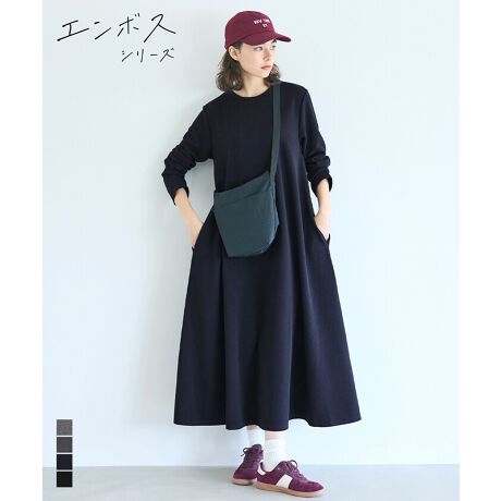 フレアシルエットで女性らしく、エンボスAラインワンピース