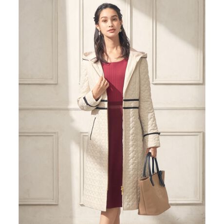 毎年ご好評いただいている高機能性の綿が入ったキルトコート。コンパクトな袖のリボンディテールが大人可愛さを表現します。中にカシミアなどニットを合わせて、真冬の寒さを乗り切れるコートです。静電気を防止するテープが入っており、スカートやニットともコーディネートしやすいアイテムです。