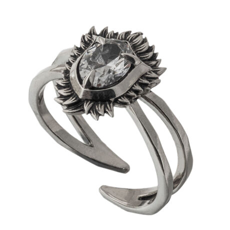 銀とクリアジルコニアの輝きが美しい盾型ストーンリング。翼、クローを細かく繊細に彫り込んだデザイン。