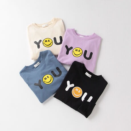 シンプルなルックスにYOUMEの文字が映えるTシャツです。ニコちゃんマークのアレンジを加えて、ストリートポップな雰囲気をMIX♪ しっかりと印象に残るデザインで、コーディネートの主役として大活躍してくれます。内側にはお名前を記入できるタグつきです。※90サイズのみ肩開き
