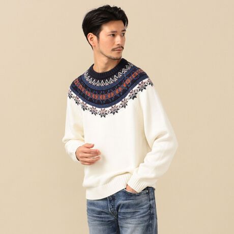 立体感のあるノルディックデザインが特徴のクルーネックニット