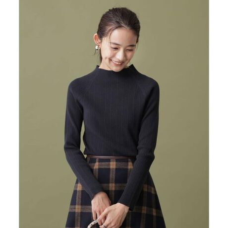 シアバター加工を施した肌に嬉しいハイネックニット。ランダムなリブデザインで変化を付けたさりげないディティールが魅力のシンプルな一着。ラグランスリーブでニットならではの肩のもたつきも気にならず、女性らしいシルエットを楽しめます。ハウスクリーニングも可能でデイリーユースに最適。カジュアルからオフィススタイルまでシーン問わず活躍できる万能アイテムです。