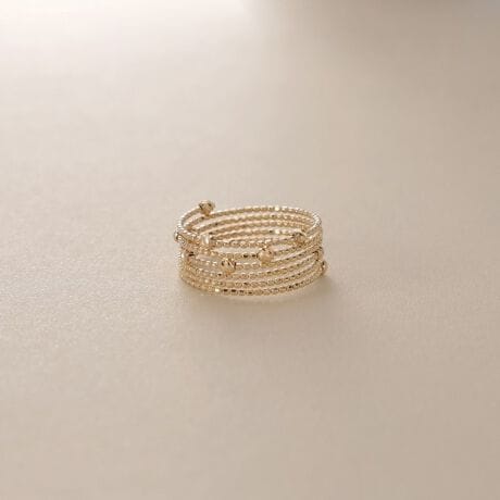煌くカットボールのワイヤーにステーション状に配置したカットビーズが、さらに華やかな存在感を放つリング。