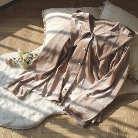 柔らかく、程よい光沢のあるベロア素材を使用したトップス型ルームウェア。