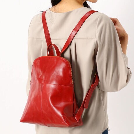 シンプルデザインでツヤのあるゴートレザーを使用したリュック。