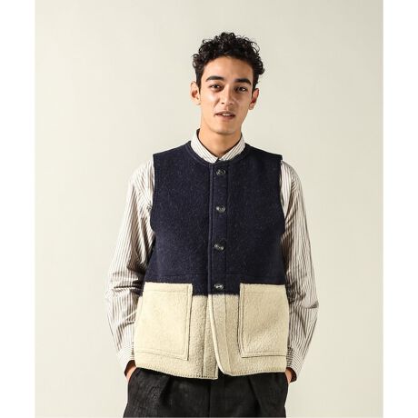 英国海軍のヴィンテージダッフルコートをデザインソースに、独自に製作されたブランケット素材のベスト。