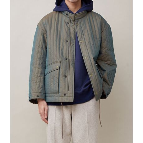 中綿をキルティングしたシャンブレー素材がインパクト大のショートブルゾンです。