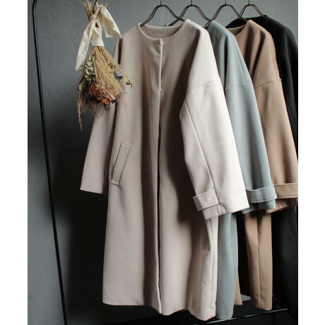 女性らしさをぐっと引きたててくれる上品なノーカラーコート。
