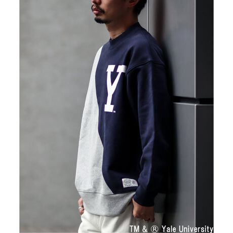 大胆なバイカラーデザインでモダンカジュアルに仕上げた裏微起毛トレーナーです。SPALDINGとYALE Universityの”色”を配色で表現しています。