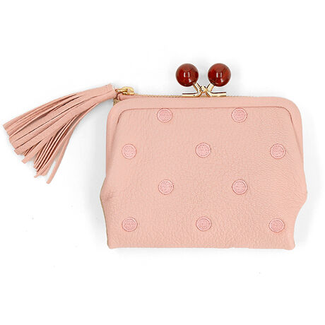 がま口部分のアクリル玉がかわいい2つ折り財布。