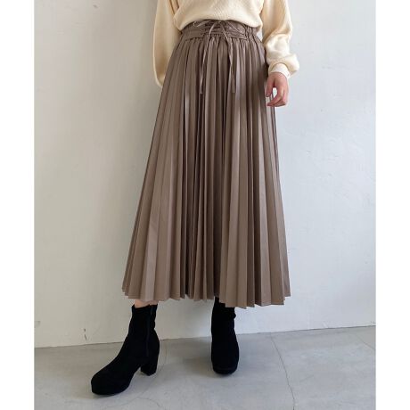 上品な光沢のスエード生地とフェイクレザーで仕立てたプリーツスカートの登場♪
