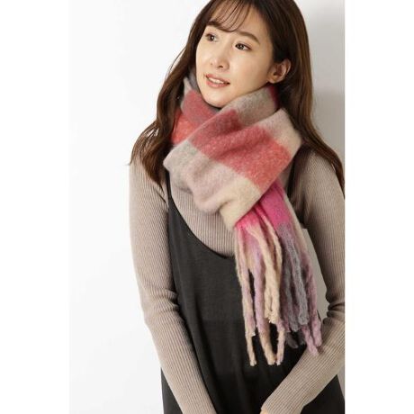 [型番:0170293571]マカロンのような柔らかなカラーと、モッチリとして太いフリンジがポイントのマフラー。肉厚な分、細めのシルエットなので、スタイリングがもたつかずスッキリとコーディネートすることができます。