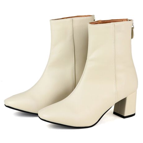 履きやすくて歩きやすい!6cmのフレアチャンキーヒールで美脚効果抜群のスクエアトゥヒールブーツ。