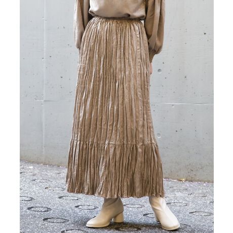 ジャガードハートで仕上げたクリンクルスカートさりげなくハートをしのばせたジャガードデザインは、上品かつ女性らしい雰囲気を叶えてくれるアイテム◎今季もマストなクリンクル加工が施されたスカートは大人な女性を演出してくれます◎同色同素材のブラウス【PB1131】と合わせてワンピース風に着こなすのもおすすめです。 伸縮性:あり 透け感:なし
