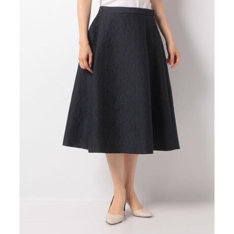 ジャカードで描き出した立体感のあるレーシーなパターンが、さりげなくエレガントに浮かび上がるミモレ丈スカート。ふわっと理想的な広がりを見せるボリュームのあるフレアシルエットで、ドレスアップシーンも映えそうな1品。