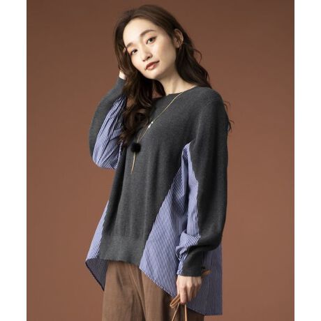 ストライプ柄の布帛とニットを切り替えたプルオーバー。