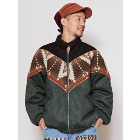 目を惹くネイティブ調の柄やフェイクスエード素材をパッチワークしたメンズジャケット。ゆったりサイズでラフに使える。中綿入りと上下に開くダブルファスナーで防寒と機能性も抜群!