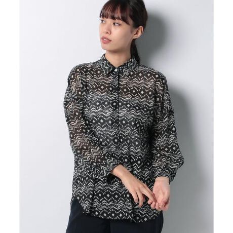透け感たっぷりにシフォン素材に、ちょっぴりエスニックな雰囲気漂う手描き風のプリントを重ねた長袖シャツ。シックなカラートーンで落ち着きをキープしているから、大人の装いにもしっくりマッチしてくれるはず。 ※定価(税込)は、2020年07月23日のセール開始前の店舗における販売価格です。