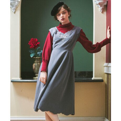 「2020秋冬新作」ローズカットワーク刺繍ジャンパースカート/an another angelus