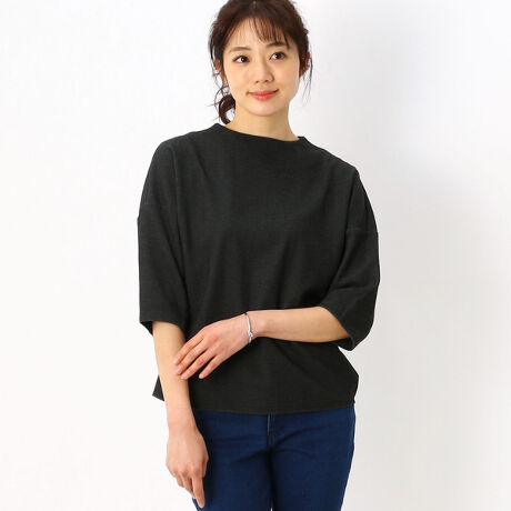 様々なシーンで活躍するクルーネック5分袖ブラウス。ワードローブに備えておくと重宝するベーシックなアイテムです。