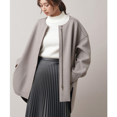 裏フリースのヘリンボーンコート。トラッドなヘリンボーンをカジュアルに仕上げたシンプルコート。裏側はフリースで薄手でも暖かくご着用いただけます。パンツでもスカートでも合わせやすいショート丈。後ろに丸みをつけた裾ラインが女性らしいシルエットを描きます。バックには装飾ベルトをあしらってスタイリッシュな雰囲気に。フロントは比翼仕立てで閉じたときにもすっきり着られます。インナーを選ばず着まわしやすいノーカラーもポイント。細かいヘリンボーン柄なのでスタイリングの幅も広がります♪ 裏地なし 裏フリース 伸縮性なし 中厚 前開きファスナー 袖口ボタンあり サイドポケットあり ベルト取り外し可 洗濯:洗濯機使用可(ネット使用)