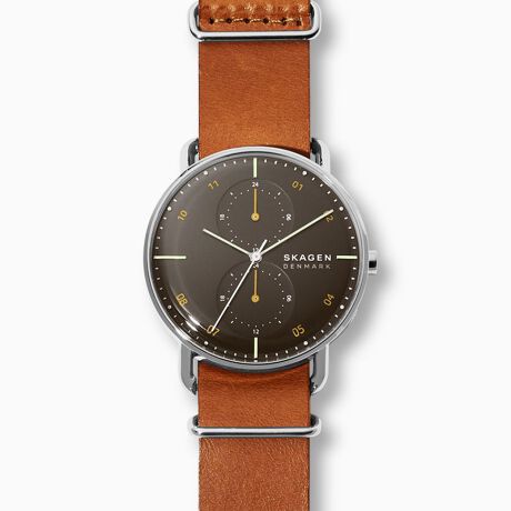 ドーム型クリスタルに多機能ダイアルとの組み合わせにより、立体的なフォルムが天体を思わせる「HORIZONT(ホリゾント)」。NATOタイプのレザーストラップが快適な着用感とミリタリーテイストをプラス。