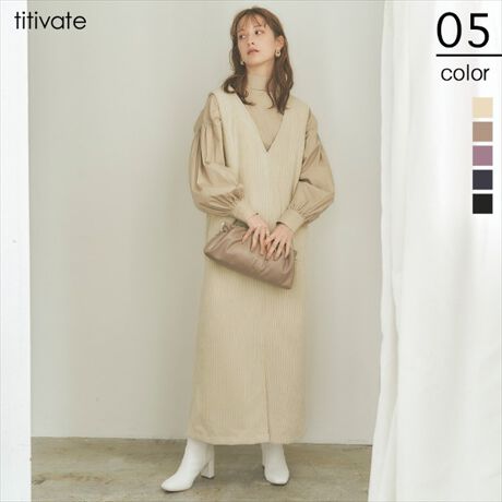 コーデュロイ素材が季節ムードを盛り上げる大人カジュアルなワンピース。
