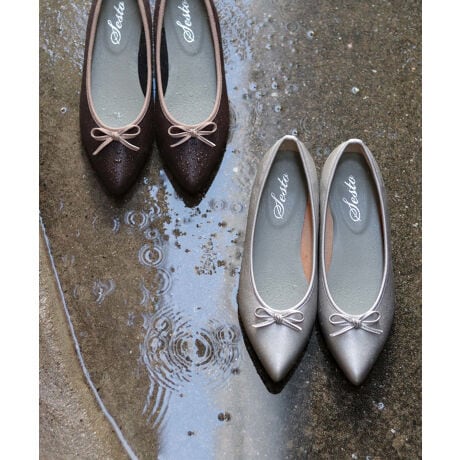 ポインテッドトゥのリボン付きローヒールレインパンプス/レインシューズ