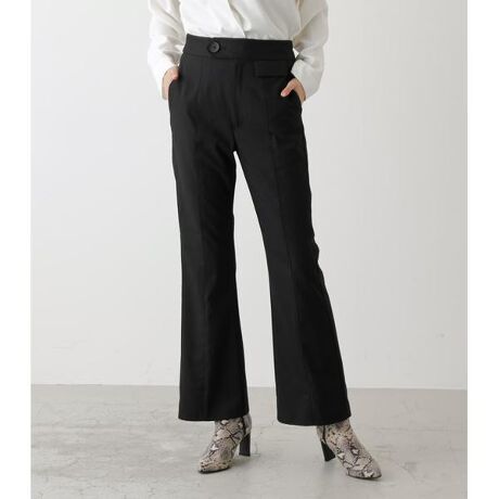 2020 Autumn&Winter item・ポリエステルレーヨンのツイルストレッチの生地を使用しています。・微ストレッチの素材で伸びすぎずパンツのシルエットがきれいに出ます。生地も程よい柔らかさで着心地もいいです。・細身のフレアシルエットで美脚効果のあるセンタープレスパンツ。・センタープレスデザインによる美脚効果だけでなく、ストレスフリーな微ストレッチ素材も嬉しいポイント。・カジュアルから綺麗目まで幅広く着回しの効く一着です。<コーディネート>・ハイゲージのニットやルーズなカットソーと合わせるだけでトレンド感を演出。・冬はざっくりしたニットとの合わせもおすすめです。
