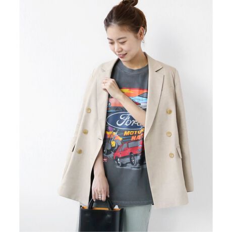 リネンブレンドダブルブレステッドジャケット◆