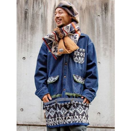 星空の下、家族や仲間と焚き火を囲んで自然を感じる。そんなシーンをイメージしてデザインしたメンズジャケット。キャンプシーンなどアウトドアで役立つこだわりが詰まったデザイン。ネイティブ柄の織り生地が存在感を醸し出します。もちろんタウンユースでも大活躍!秋冬のカジュアルコーデやフォークロアスタイルに◎